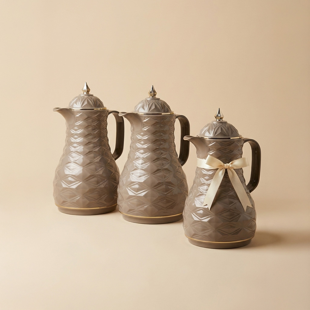 We are thrilled to introduce the Elmas Thermos Collection, a perfect fusion of tradition and modernity, inspired by rich cultural heritage. The collection showcases a charming design, available in a variety of vibrant colors, each highlighted by a sparkling gold accent on the body and lid.
