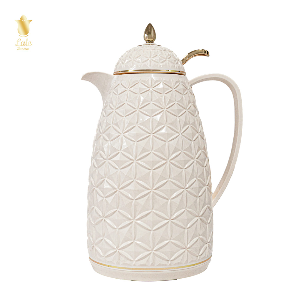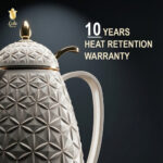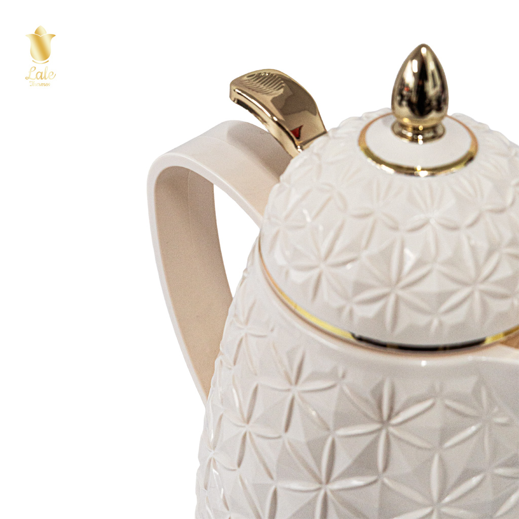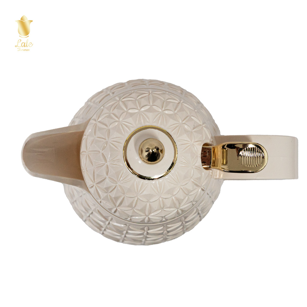يأتي ترمس لالي بنظام الكبس ليقدم تجربة ضيافة مميزة تجمع بين الفخامة والعملية. يتميز بتصميم أنيق بنقشة هندسية مع لمسات ذهبية تضيف لمسة راقية لمائدتكم.